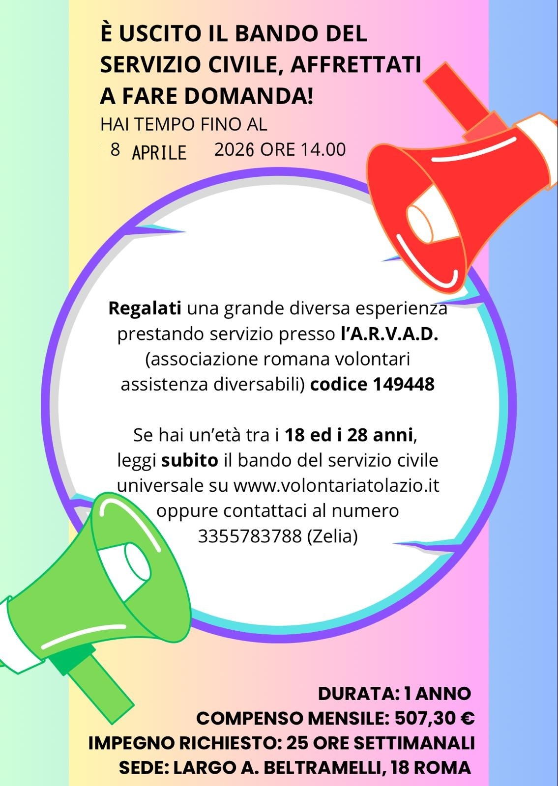 Vuoi svolgere il Servizio Civile presso l’ A.R.V.A.D.?